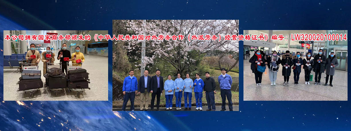 是從事對外勞務合作的專業性公司,本公司擁有國家商務部頒發的《中華人民共和國對外勞務合作(外派勞務)經營資格證書》編號:LW320020100014。從一九九五年開展勞務合作以來,積極開拓進取,先后向日本、加拿大、新加坡、韓國等國家派遣勞務人員近1萬5千余人。勞務合作行業主要有服裝(車工、裁剪、整燙、制板、維修、車間管理)、針織業(織布、漂染、針織、橫機、套口羊毛衫工)、建筑工程(技術人員、瓦工、鋼筋工、拌灰工、木工、油漆工、電工、鋁合金工、水暖工等)、機械工(銑床、車床、沖床、鉆床、鑄造等)電焊工(壓力容器、亞弧焊、建筑設備安裝、船舶、管道工)、遠洋捕撈(職務船員、普通漁工、水手),高級廚師(川菜、粵菜、京菜、淮揚菜)、電子裝配、園藝、蔬菜種植、桑蠶飼養、海、淡水養殖、護士、翻譯(英語、日語、韓國)等,日本辦事處設在日本東京、廣島主要負責管理和服務日本研修生及貿易方面的聯絡工作,國外辦事處和中國公司現有工作人員25人,專職勞務工作人員10人,從事勞務行業均10年以上,翻譯、培訓教師5人,外教2人,會計3人,業務人員5人。